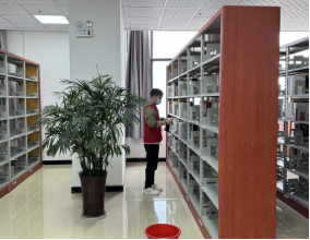 活动当天,建筑学院的同学们齐聚图文信息楼,对一楼东侧、五楼西侧以及六楼东西两侧的自习室展开全面卫生清扫。大家分工明确,配合默契,迅速投入到紧张的劳动中。同学们充分发扬雷锋精神中的 “螺丝钉精神”,不怕脏、不怕累,仔细清理每一个角落。无论是地面的灰尘、桌椅的污渍,还是窗台的积垢,都逃不过大家的 “火眼金睛”。经过一个多小时的努力,原本略显杂乱的自习室焕然一新,整洁明亮的环境让人眼前一亮。