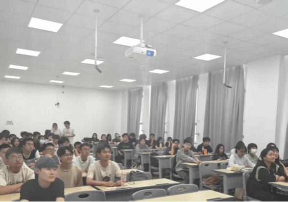 活动当日,建筑学院的同学们怀揣着崇敬与期待的心情,有序步入布置一新的观影教室。教室中,鲜艳的团旗熠熠生辉,营造出庄重而热烈的氛围。活动伊始,建筑学院团委负责人周广坤走上讲台,对本次红色观影活动的背景、目的和意义进行了深入阐释:红色文化是中华民族宝贵的精神财富,蕴含着丰富的革命精神和厚重的历史文化内涵。通过观看红色影片,同学们能够更加直观地了解党的光辉历程,感悟革命先辈们的崇高理想和坚定信念,从而在新时代的学习和生活中汲取奋进力量。