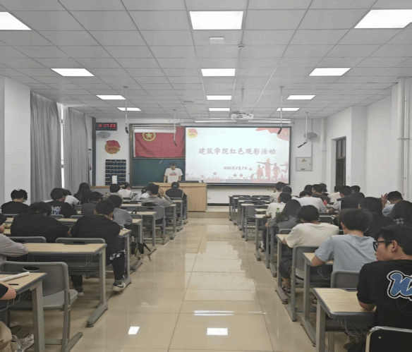 为深入贯彻落实习近平新时代中国特色社会主义思想,传承红色基因,培育和践行社会主义核心价值观,进一步激发建筑学院师生的爱国热情和历史责任感,2025年5月7日,在西楼C213教室,建筑学院团委精心策划并组织开展了一场意义非凡的红色观影活动。学院各年级各班学生踊跃参与,共同沉浸于那段波澜壮阔的红色历史之中。